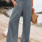 Women's Solid Color Smocked Waist Side-seam Pockets Wide Leg Pants